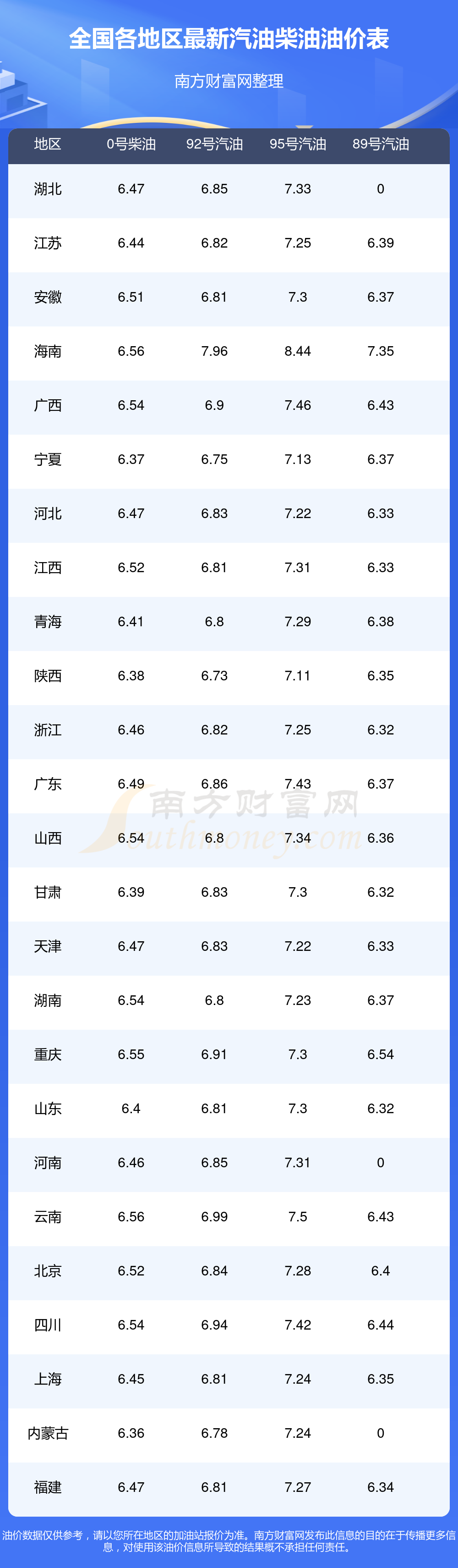 2025年12月14日全国油价调整及最新汽油价格表