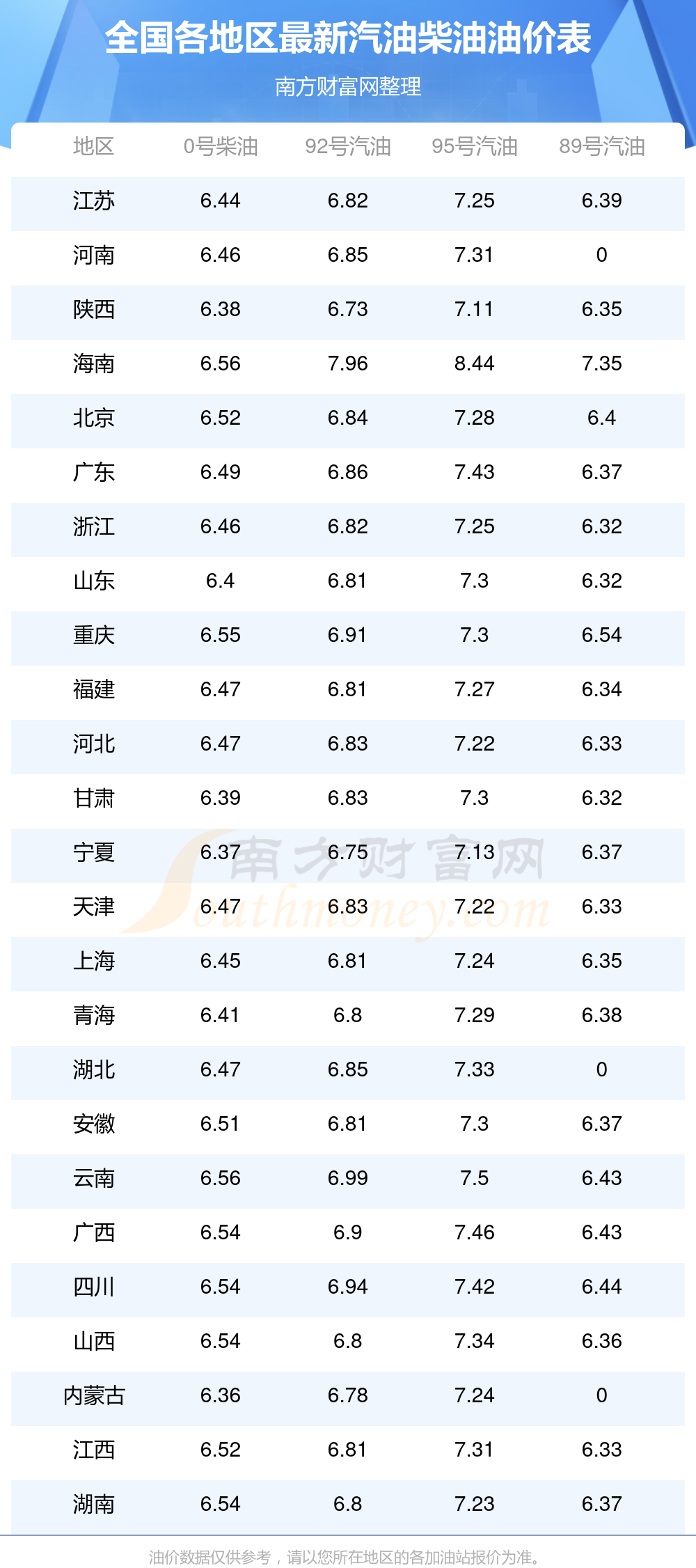 全国0号柴油12月14日的最新价格是12月9日油价调整后的价格,详情如下:平均价格为6元/升,最低的是内蒙古,价格6.36元/升,最高的是海南,价格6.56元/升。,下一轮油价调整时间12月22日24时,距离现在还有8.6天。