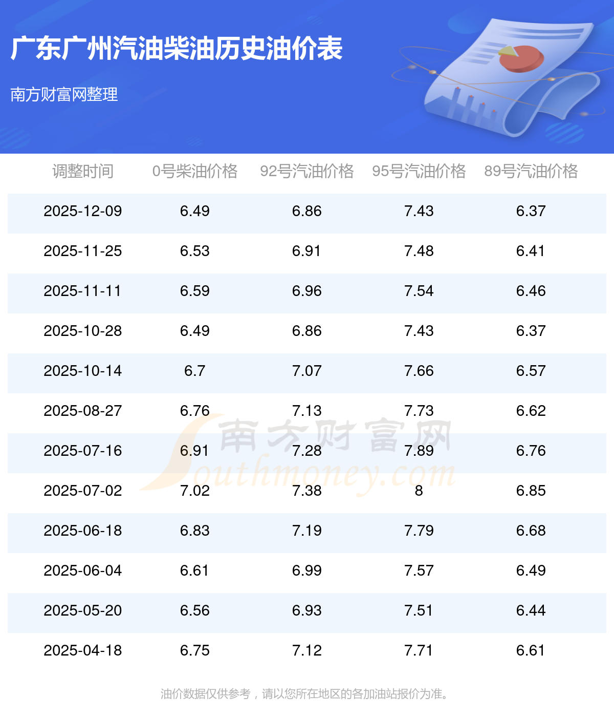 油价数据仅供参考,请以您所在地区的各加油站报价为准。