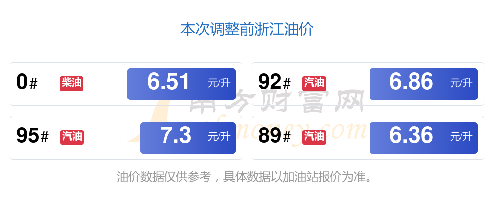 油价数据仅供参考,请以您所在地区的加油站报价为准。南方财富网发布此信息的目的在于传播更多信息,对使用该油价信息所导致的结果概不承担任何责任。