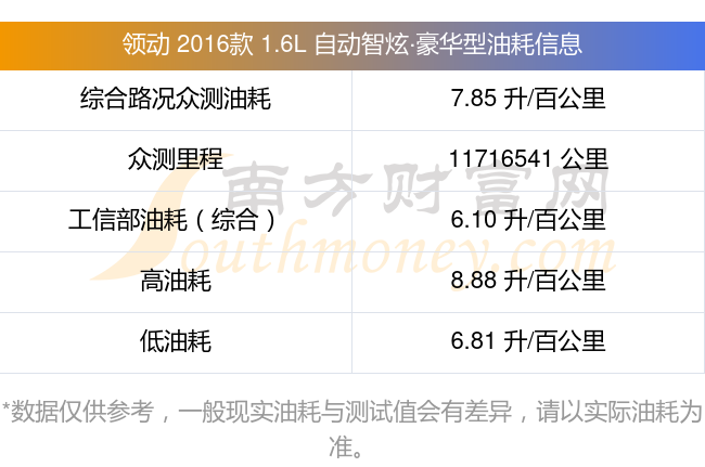 根据多位车主实测得出数据,该车型低油耗为6.81L/100km,高油耗为8.88L/100km,综合路况众测油耗为7.85L/100km,工信部综合油耗为6.10L/100km。