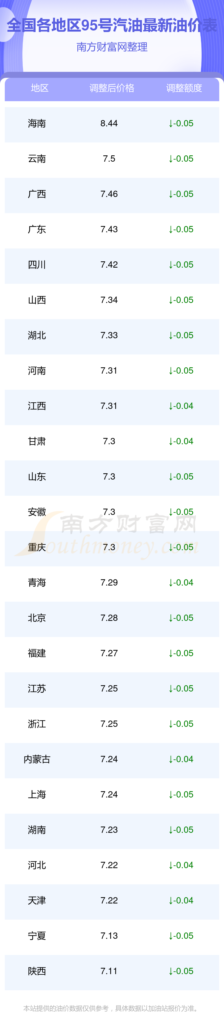 本站提供的油价数据仅供参考,具体数据以加油站报价为准。