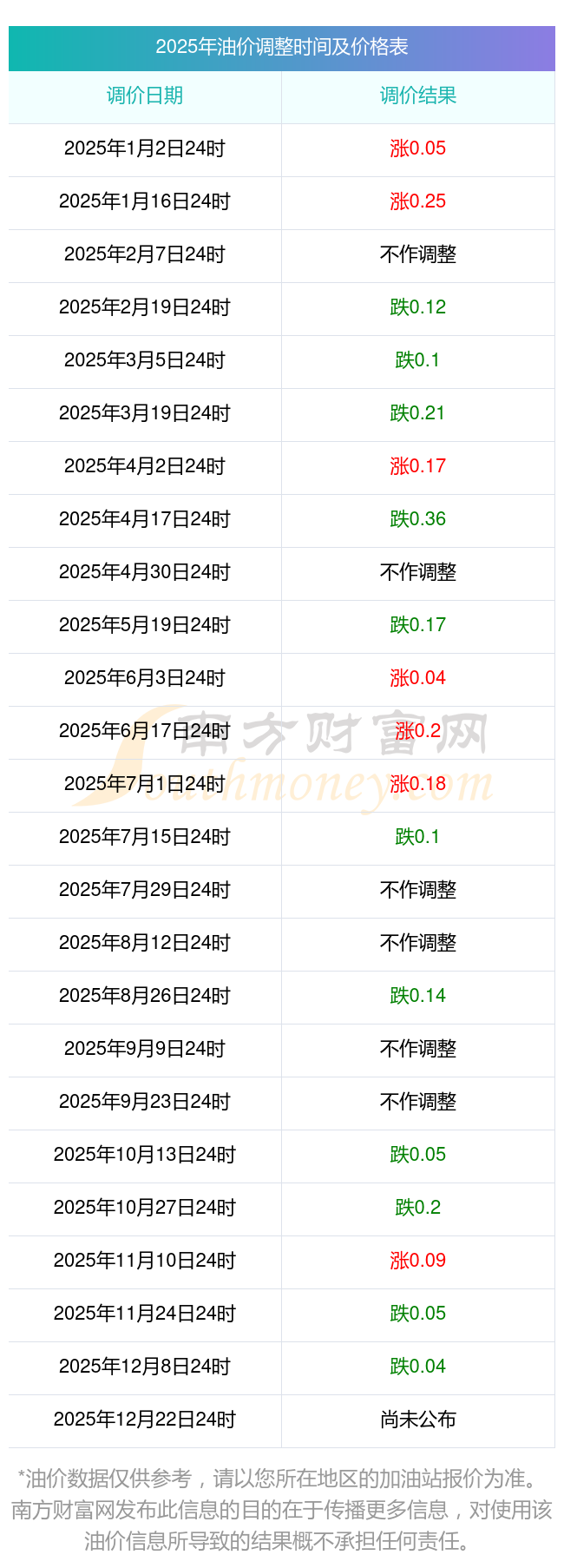 2025年12月14日全国各地汽油价格调整时间及价格一览表