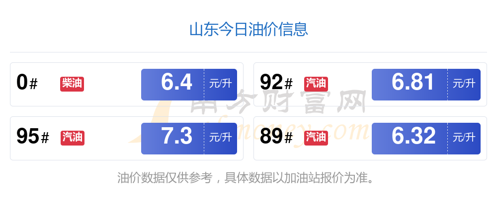 油价数据仅供参考,请以您所在地区的加油站报价为准。南方财富网发布此信息的目的在于传播更多信息,对使用该油价信息所导致的结果概不承担任何责任。
