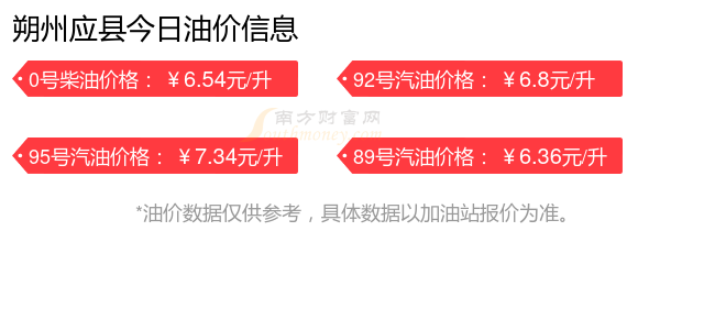 朔州应县汽油、柴油12月14日每升的价格为(油价调整时间是12月9日):92号汽油6.8元;95号汽油7.34元;89号汽油6.36元;0号柴油6.54元。