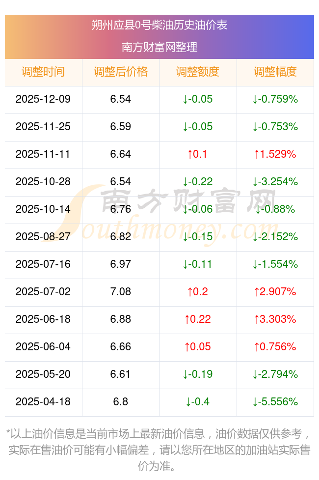 12月14日朔州应县0号柴油历史油价一览表