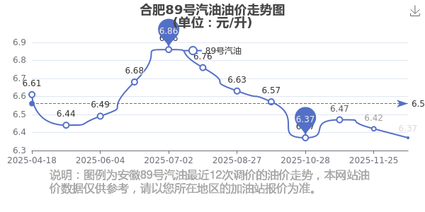 合肥汽油、柴油12月14日每升的价格为(本轮油价调整时间为12月9日):92号汽油6.81元;95号汽油7.3元;89号汽油6.37元;0号柴油6.51元。合肥下一轮油价调整时间12月22日24时,距离现在还有8.5天。