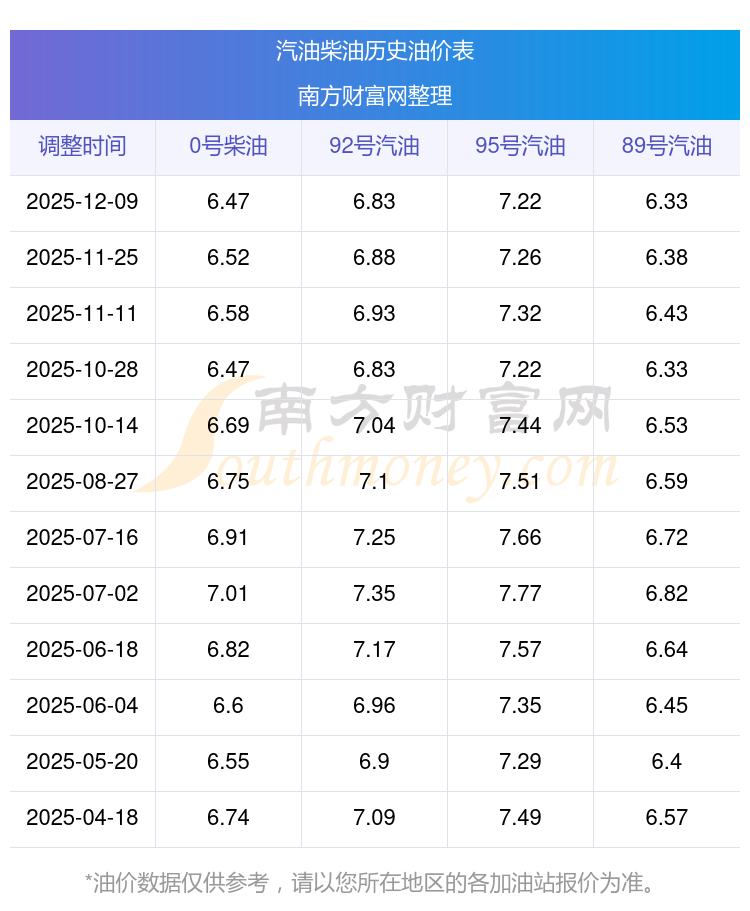2025年92号汽油价格一览表