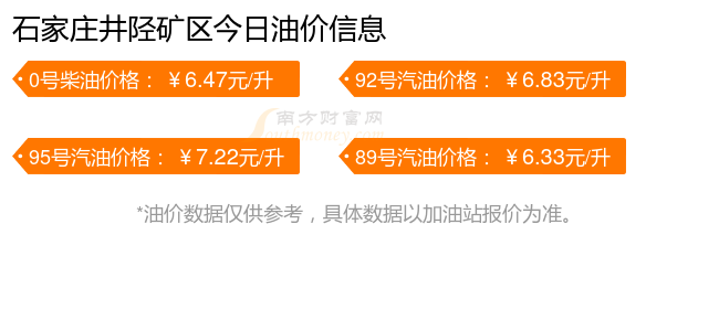 12月14日石家庄井陉矿区汽油、柴油价格是多少钱一升?12月9日调整后,92号汽油为6.83元,跌了0.05元,跌幅达0.73%;95号汽油为7.22元,跌了0.04元,跌幅达0.55%;89号汽油为6.33元,跌了0.05元,跌幅达0.78%;0号柴油为6.47元,跌了0.05元,跌幅达0.77%。