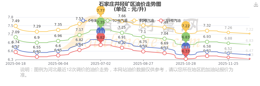 石家庄井陉矿区12月14日0号柴油历史油价调整走势图
