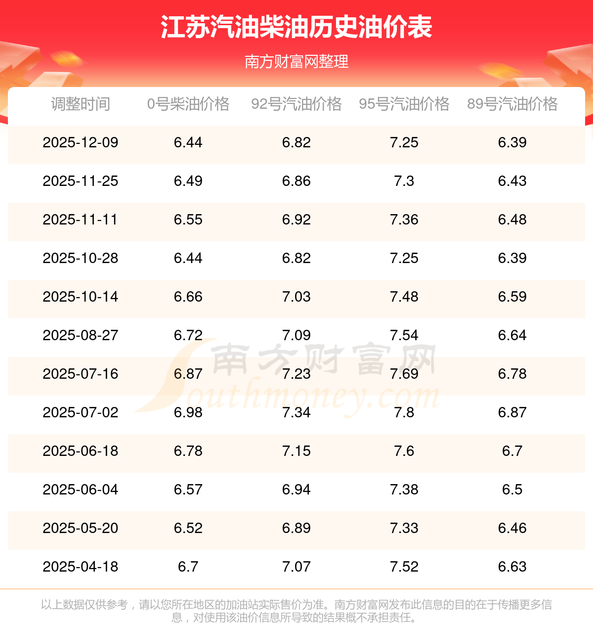2025年江苏汽油价格一览表