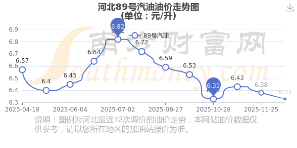 汽油价格调整最新消息:下一轮油价调整时间12月22日24时。12月14日,河北汽油、柴油每升最新价格为:92号汽油为6.83元,下跌了0.05元;95号汽油为7.22元,下跌了0.04元;89号汽油为6.33元,下跌了0.05;0号柴油为6.47元,下跌了0.05元,调整时间为12月9日。