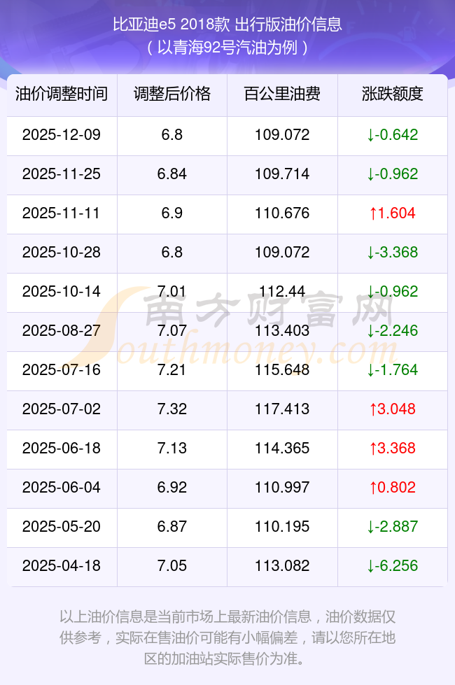 依照12月9日92号汽油最新调整价格6.8元/升来计算(以青海为例),该车型百公里的平均油费是109.072元,依照上一轮11月25日调整价格6.84元/升来计算,百公里的平均油费是109.714元,对比上一轮少花0.642元,下一轮的油价调整时间12月22日24时。