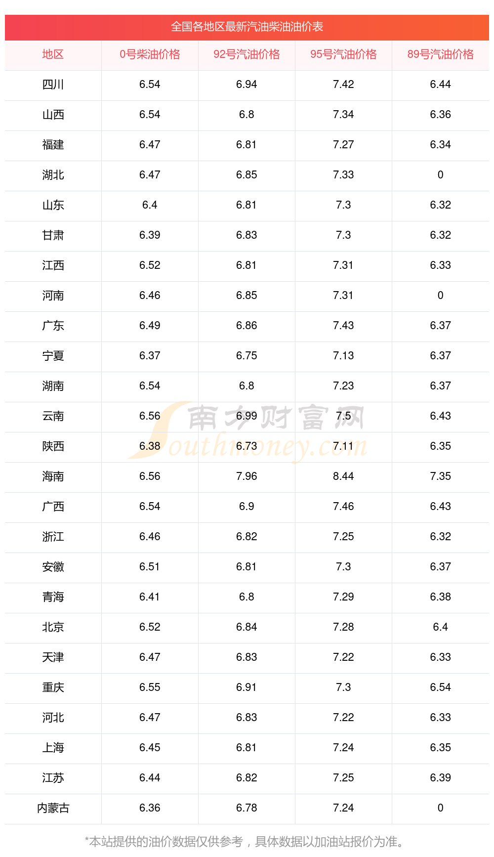 本轮油价调整时间为12月9日 ,调整后全国油价详情为: