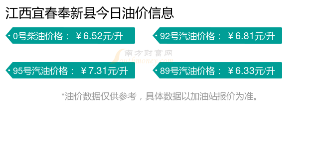 江西宜春奉新县汽油、柴油12月14日每升最新价格:92号汽油为6.81元;95号汽油为7.31元;89号汽油为6.33元;0号柴油为6.52元,本轮油价调整时间为12月9日。下一轮油价调整时间12月22日24时。