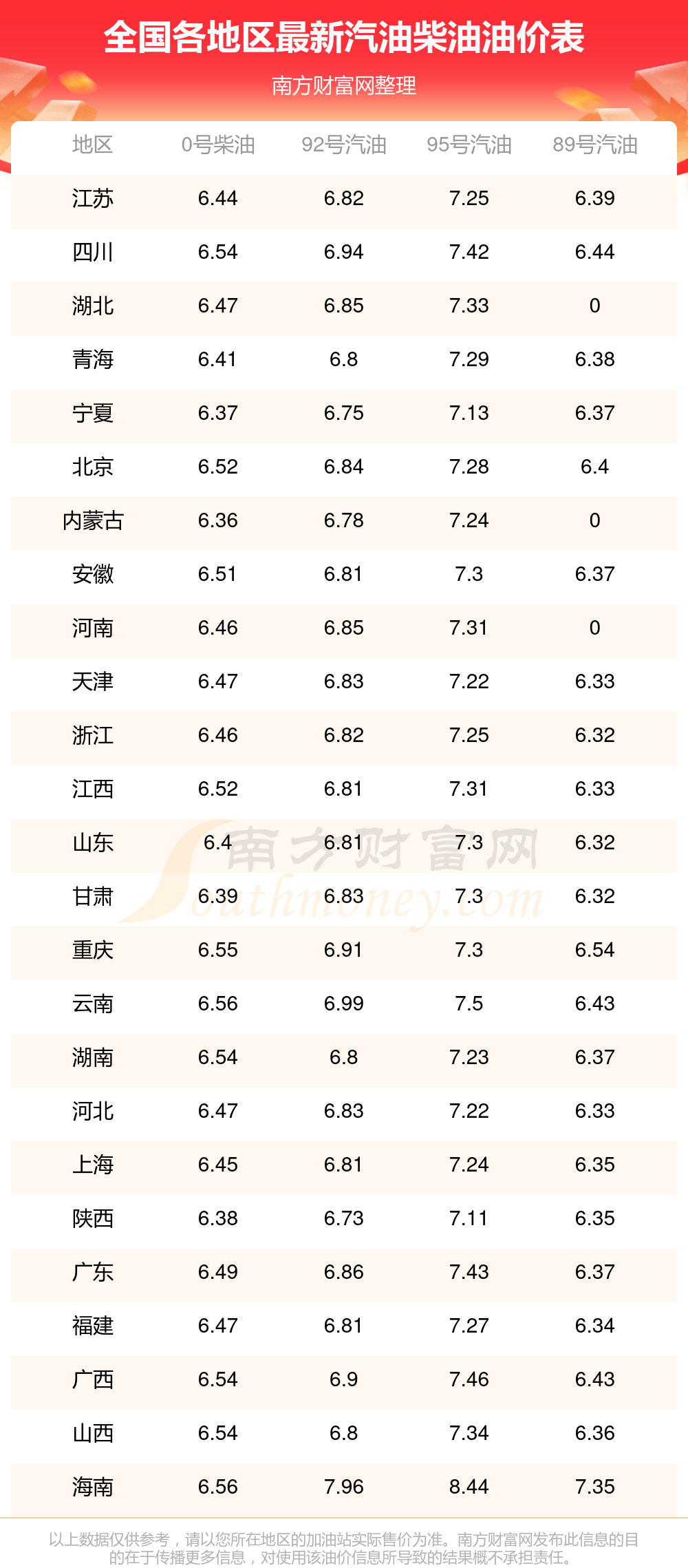 12月14日,全国0号柴油的最新价格是12月9日油价调整后的价格,具体为:平均价格6元/升,最低的是内蒙古,价格6.36元/升,最高的是海南,价格6.56元/升。,下一轮油价调整时间12月22日24时,距离现在还有8.38天。