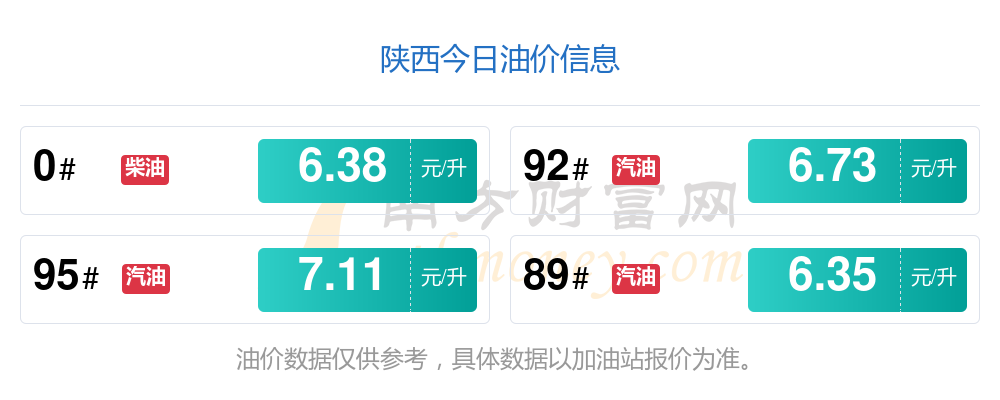 油价调整最新消息:下一轮油价调整时间12月22日24时。陕西汽油、柴油12月14日每升最新价格为:调整时间为12月9日,92号汽油为6.73元,下跌了0.05元;95号汽油为7.11元,下跌了0.05元;89号汽油为6.35元,下跌了0.04;0号柴油为6.38元,下跌了0.05元。