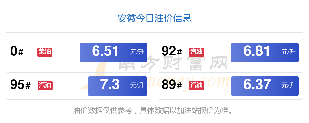 本站提供的油价数据仅供参考,具体数据以加油站报价为准。