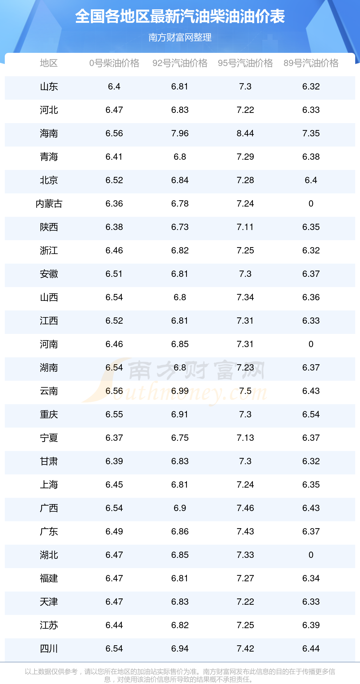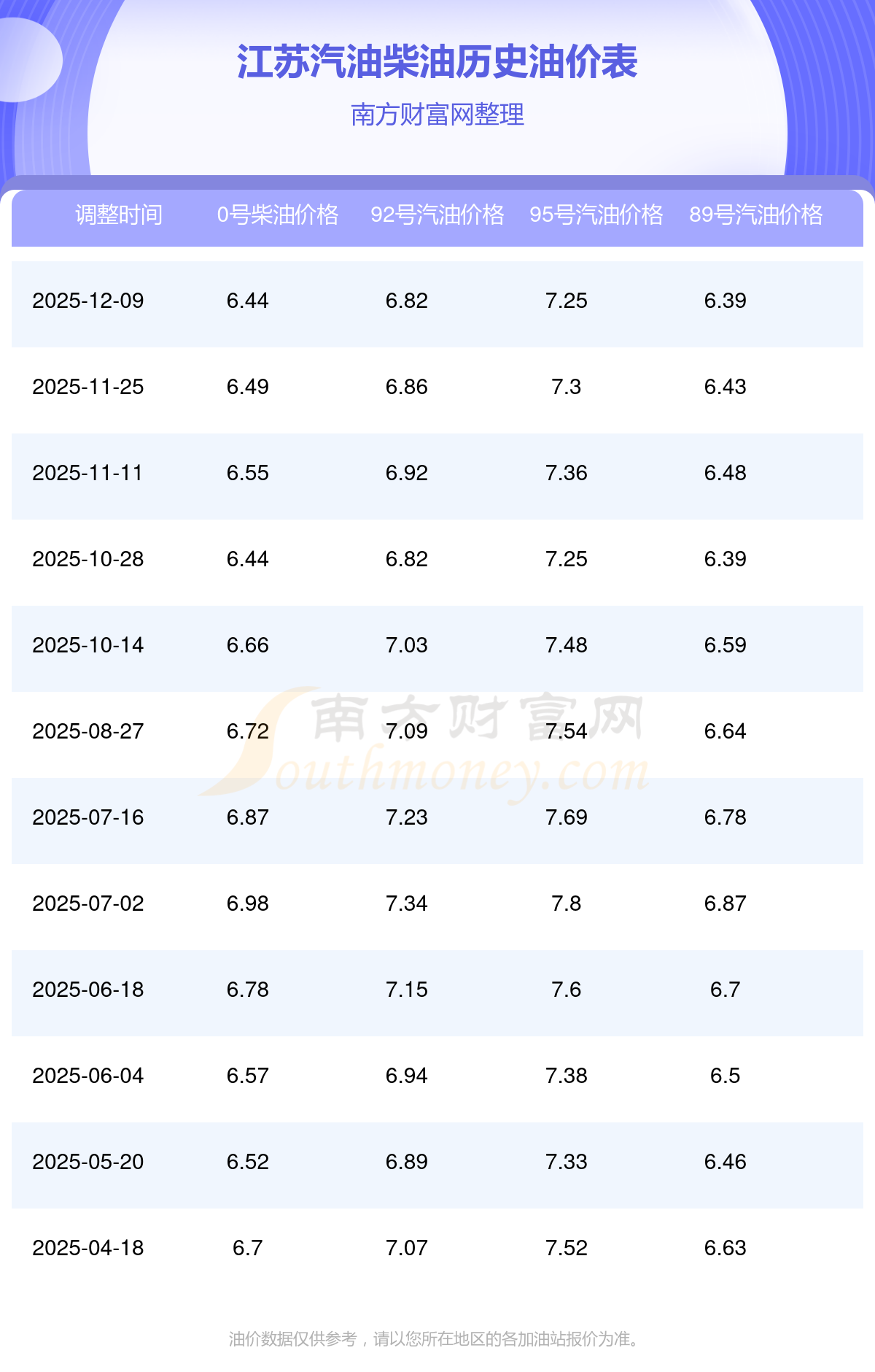 (12月14日)全国油价一览表