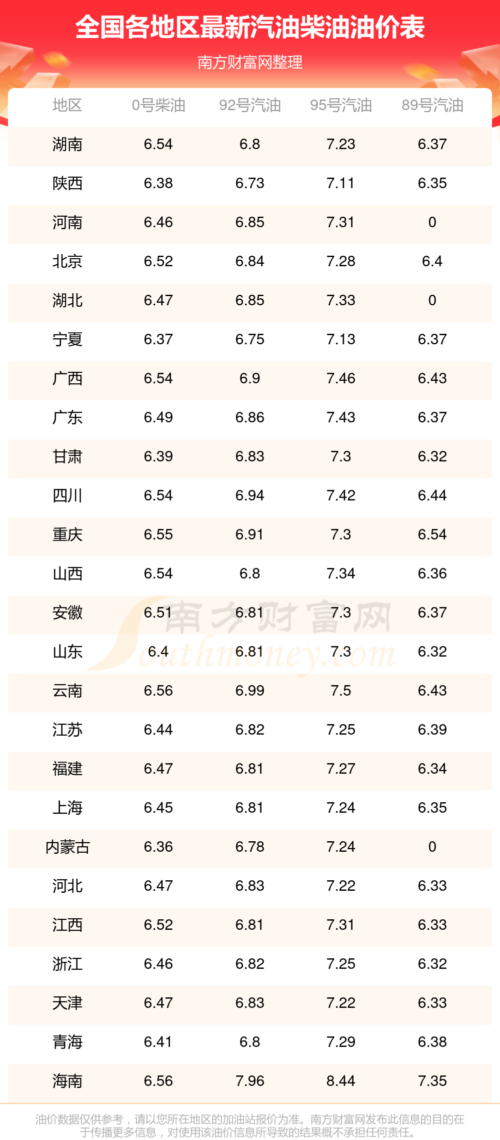 2025年12月14日全国各地油价调整及最新汽油价格表