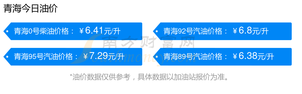 12月14日,青海汽油、柴油每升的价格为:92号汽油6.8元,下跌了0.04元;95号汽油7.29元,下跌了0.04元;89号汽油6.38元,下跌了0.04;0号柴油为6.41元,下跌了0.05元,本轮调整时间是12月9日。下一轮油价调整时间12月22日24时,距离现在还有8.36天。