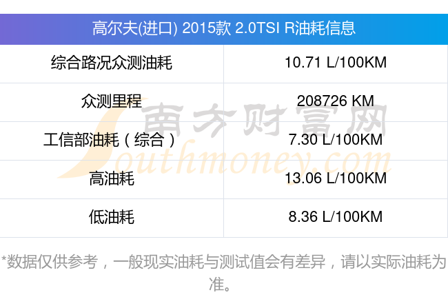根据多位车主实测得出数据,该车型低油耗为8.36升/百公里,高油耗为13.06升/百公里,综合路况众测油耗为10.71升/百公里,工信部综合油耗为7.30升/百公里。