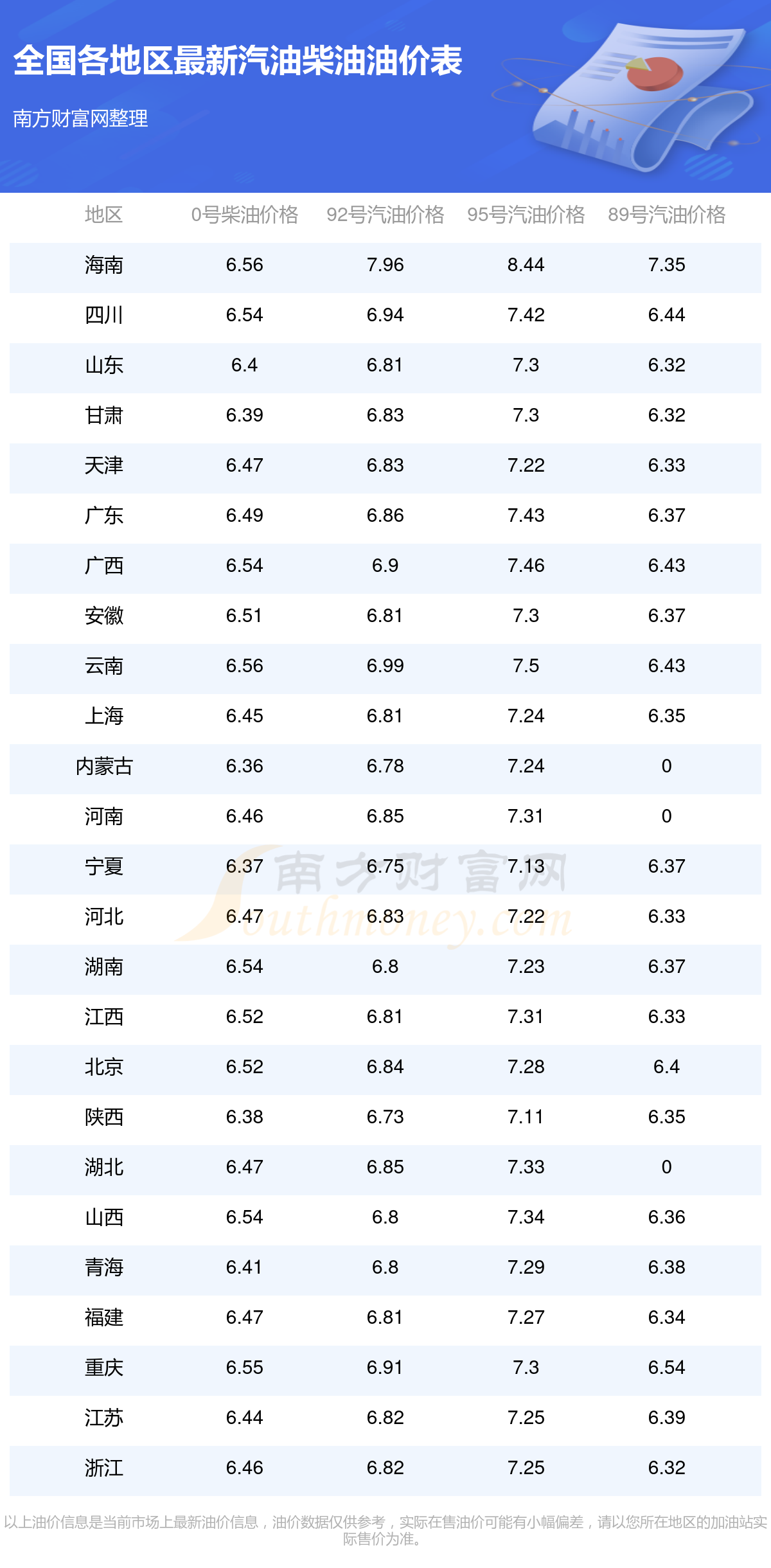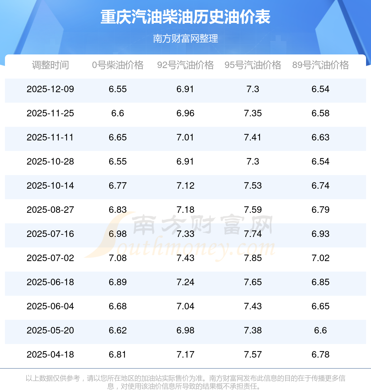 (12月15日)全国油价一览表