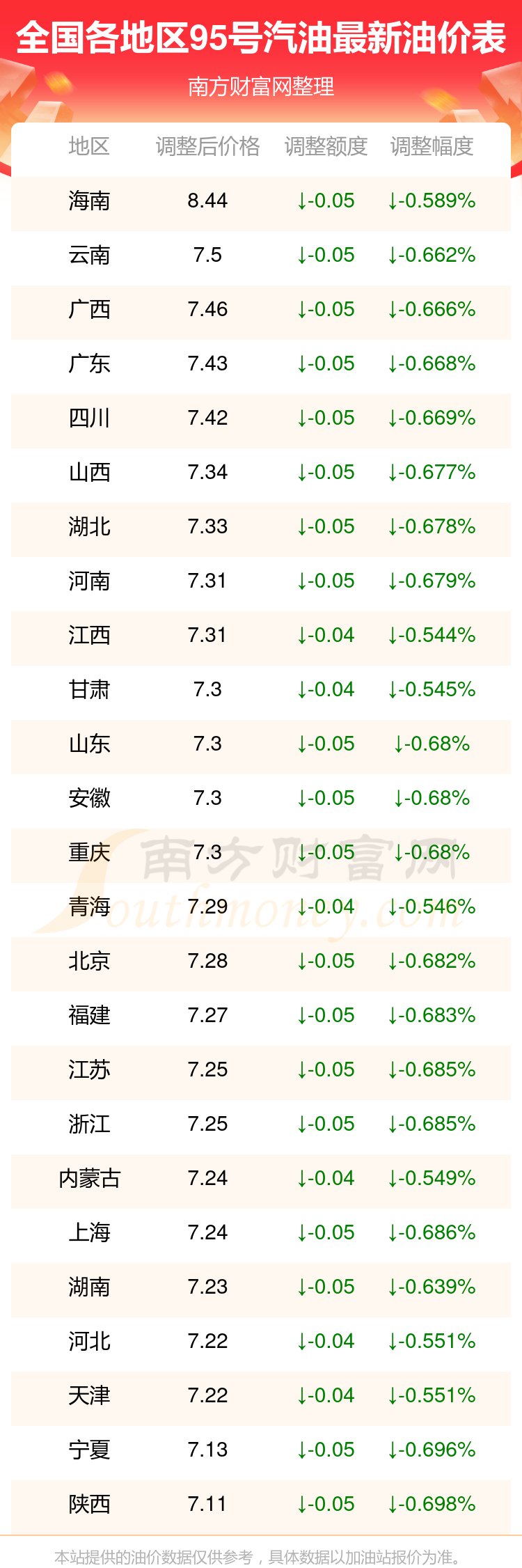 本站提供的油价数据仅供参考,具体数据以加油站报价为准。