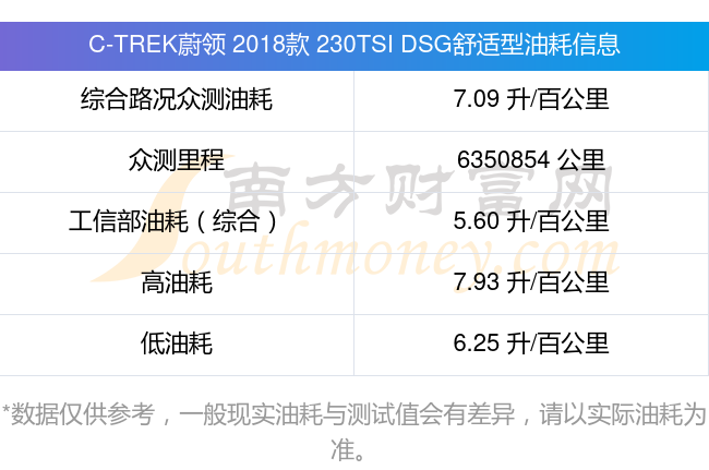 根据多位车主实测得出数据,该车型低油耗为6.25升/百公里,高油耗为7.93升/百公里,综合路况众测油耗为7.09升/百公里,工信部综合油耗为5.60升/百公里。