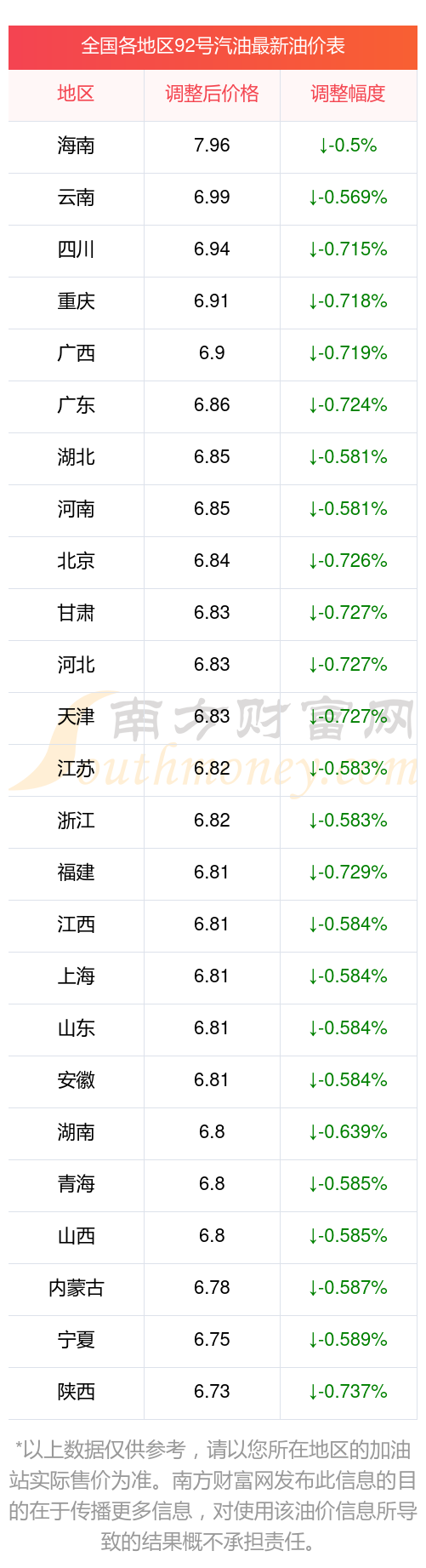 本站提供的油价数据仅供参考,具体数据以加油站报价为准。