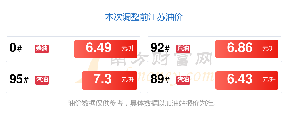 以上油价信息是当前市场上最新油价信息,油价数据仅供参考,实际在售油价可能有小幅偏差,请以您所在地区的加油站实际售价为准。