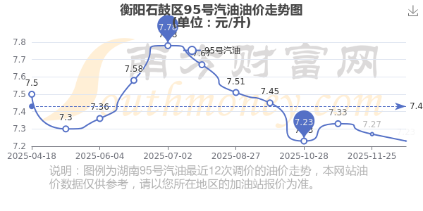 12月15日衡阳石鼓区95号汽油历史油价走势图
