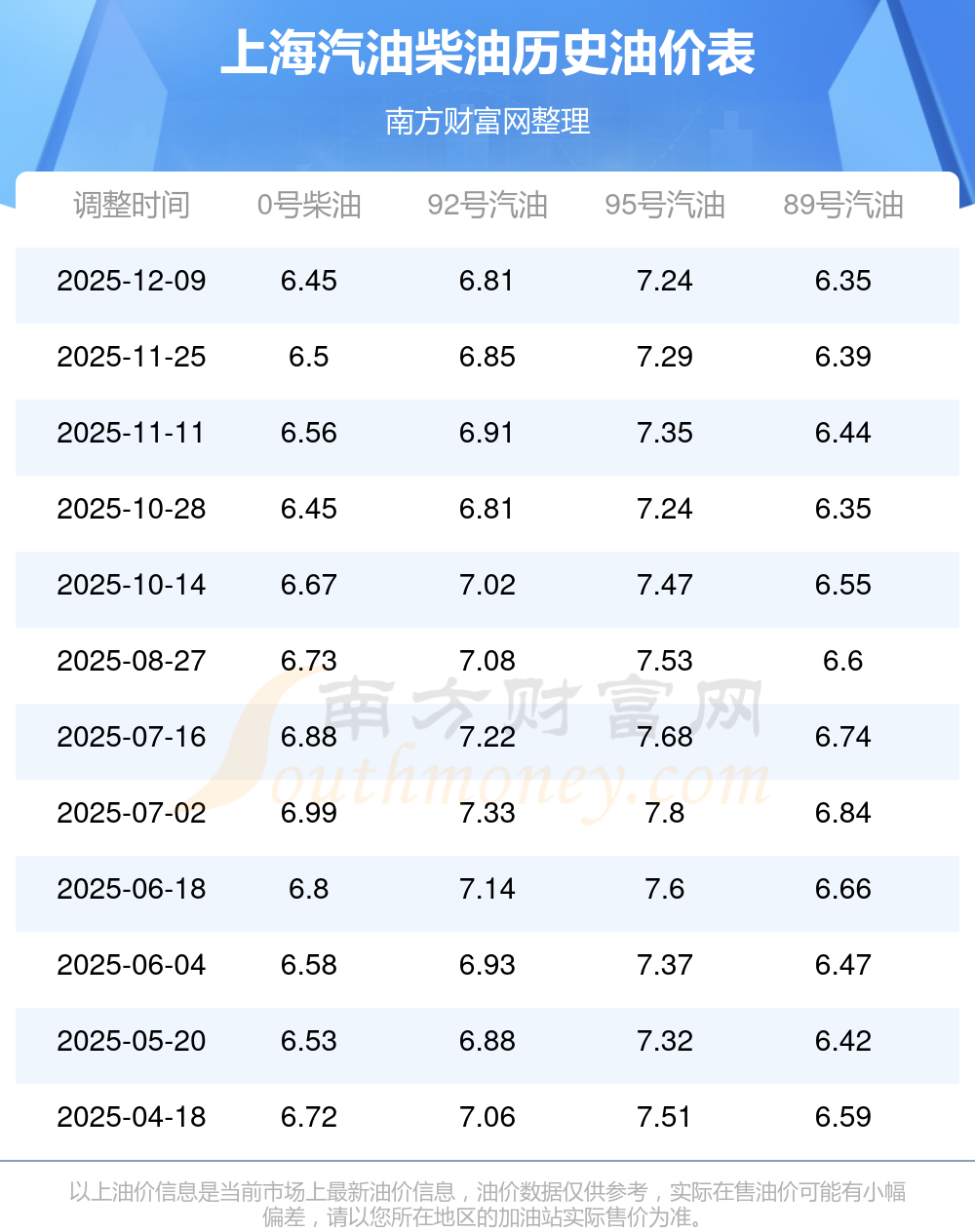 本站提供的油价数据仅供参考,具体数据以加油站报价为准。