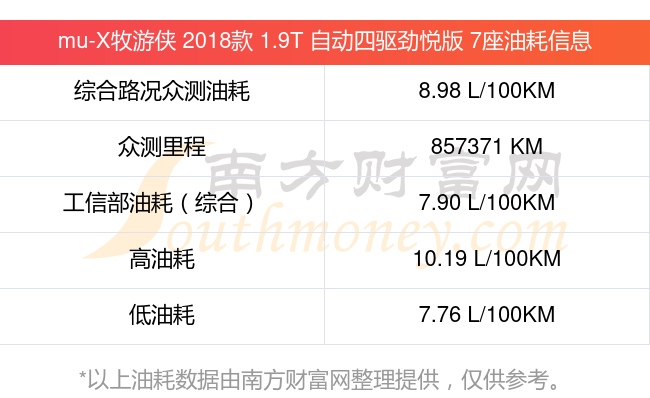 数据仅供参考,一般现实油耗与测试值会有差异,请以实际油耗为准。