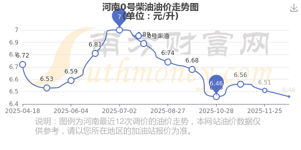 12月16日河南汽油、柴油油价:本轮油价调整时间是12月9日,92号汽油6.85元,降了0.04元,降幅达0.58%;95号汽油7.31元,降了0.05元,降幅达0.68%;0号柴油6.46元,降了0.05元,降幅达0.77%。