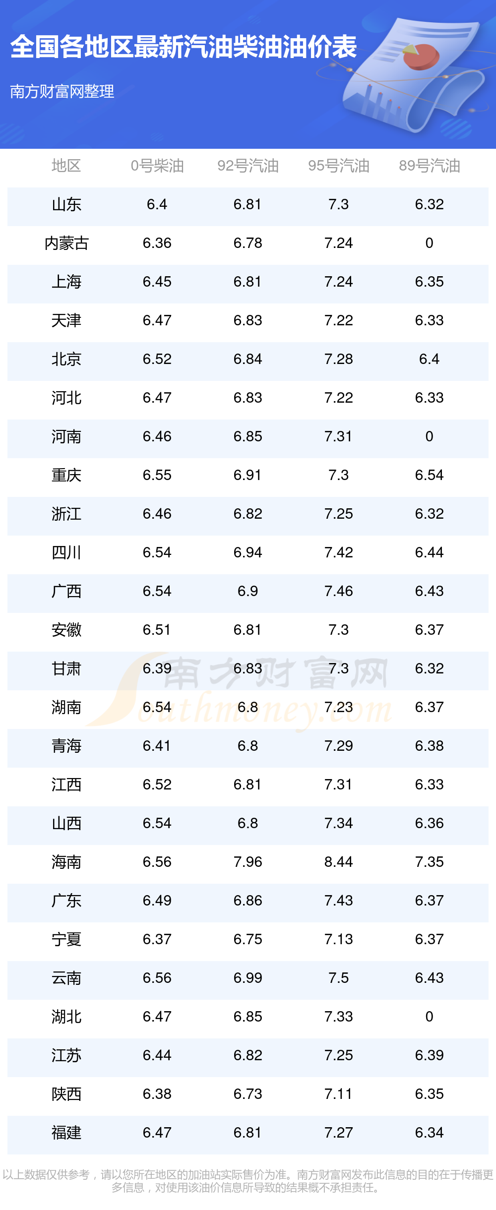 本站提供的油价数据仅供参考,具体数据以加油站报价为准。