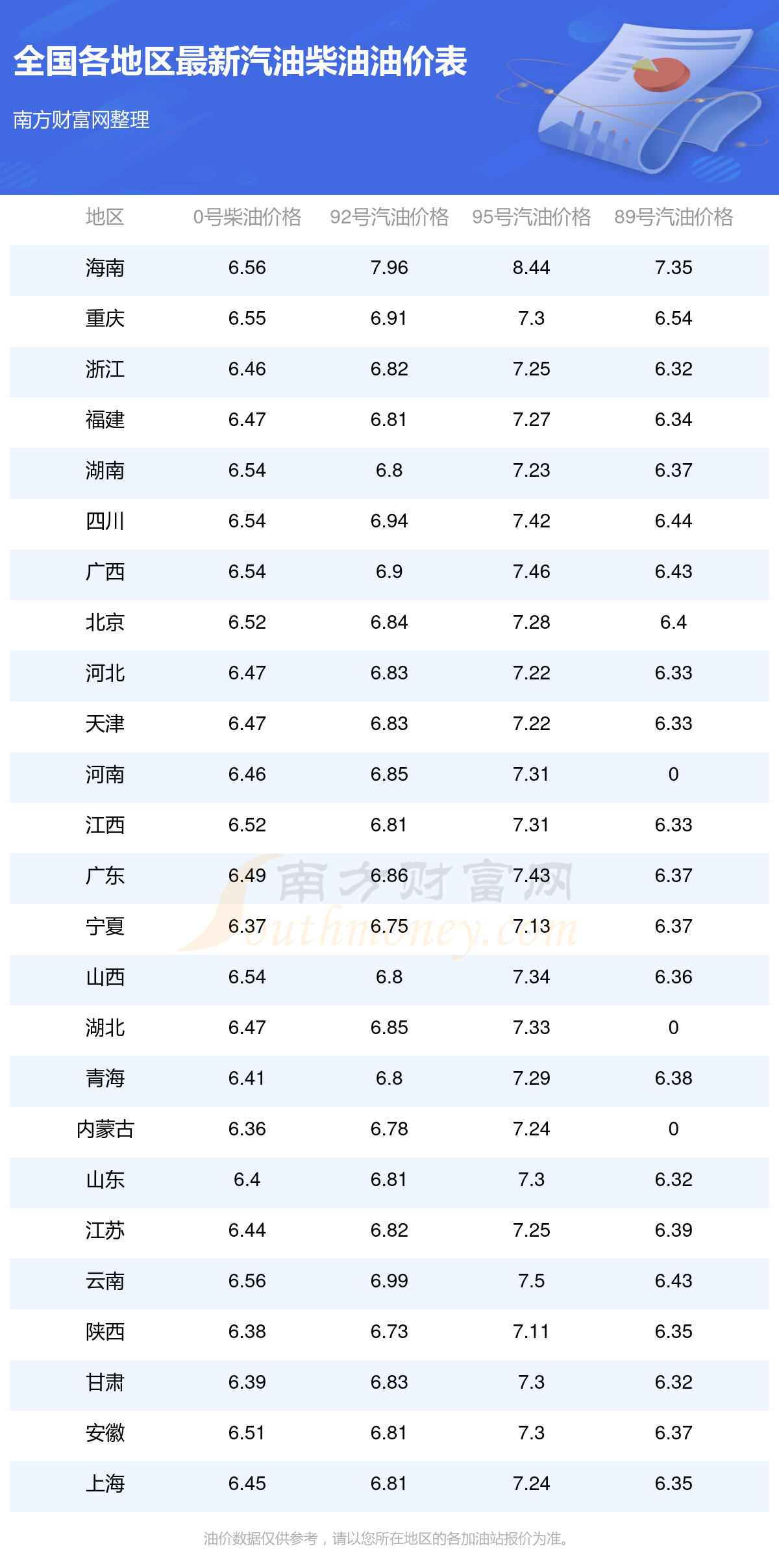 2025年12月16日全国油价调整及最新汽油价格表