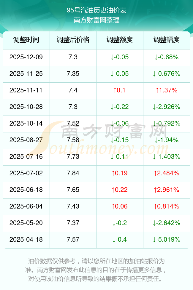 安徽2025年汽油价格调整时间表