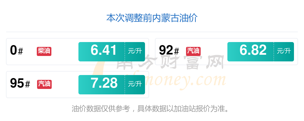 油价数据仅供参考,请以您所在地区的加油站报价为准。南方财富网发布此信息的目的在于传播更多信息,对使用该油价信息所导致的结果概不承担任何责任。