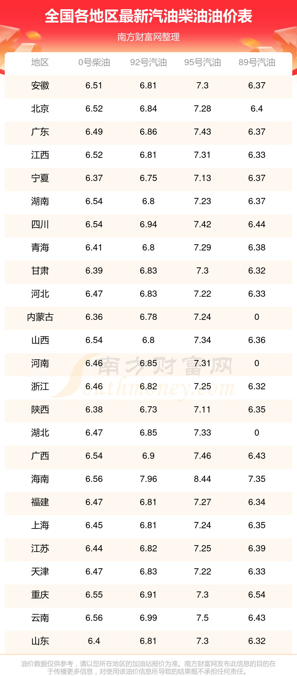 油价数据仅供参考,请以您所在地区的各加油站报价为准。
