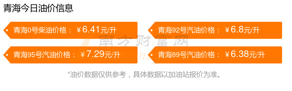 青海汽油、柴油12月16日每升最新价格多少钱一升?本次油价调整时间为12月9日,92号汽油为6.8元,下降了0.04元;95号汽油为7.29元,下降了0.04元;89号汽油为6.38元,下降了0.04;0号柴油为6.41元,下降了0.05元。下一轮油价调整时间12月22日24时,距离现在还有6.8天。
