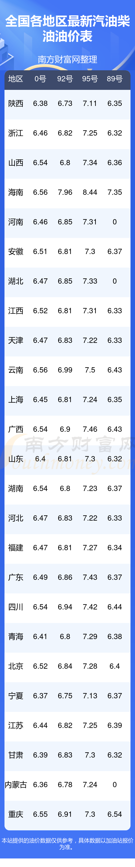 2025年12月16日全国油价调整及最新汽油价格表