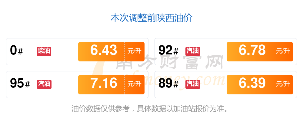 油价数据仅供参考,请以您所在地区的加油站报价为准。南方财富网发布此信息的目的在于传播更多信息,对使用该油价信息所导致的结果概不承担任何责任。