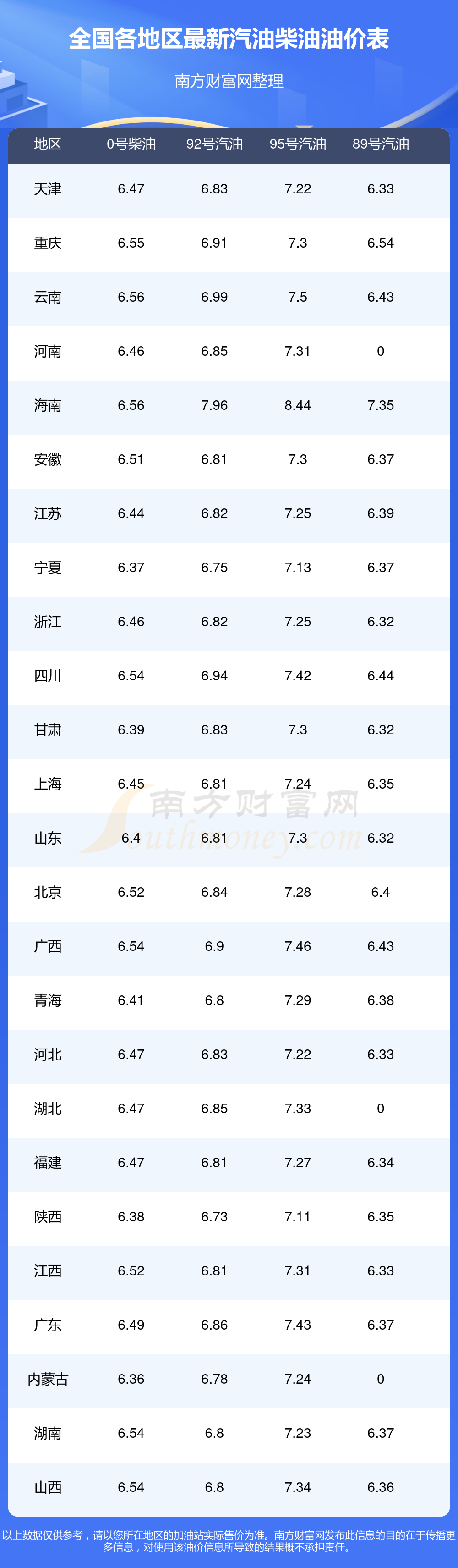 2025年12月16日全国油价调整及最新汽油价格表