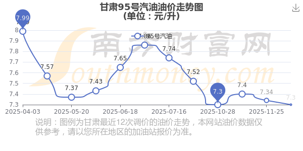 12月16日,甘肃95号汽油的价格是7.3元每升,本次的调整时间为12月9日,对比上次的调整下降了0.04元,下降0.545%,下次调整时间为12月22日24时,还有6.75天。