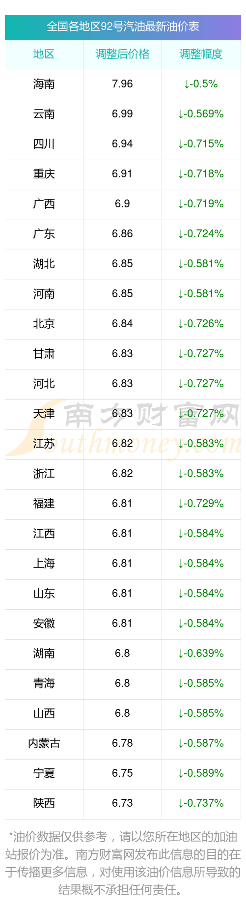 本站提供的油价数据仅供参考,具体数据以加油站报价为准。