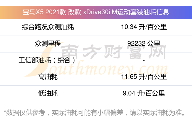 根据车主实测数据,该车型低油耗为9.04L/100km,高油耗为11.65L/100km,综合路况众测油耗为10.34L/100km,工信部综合油耗为-L/100km。