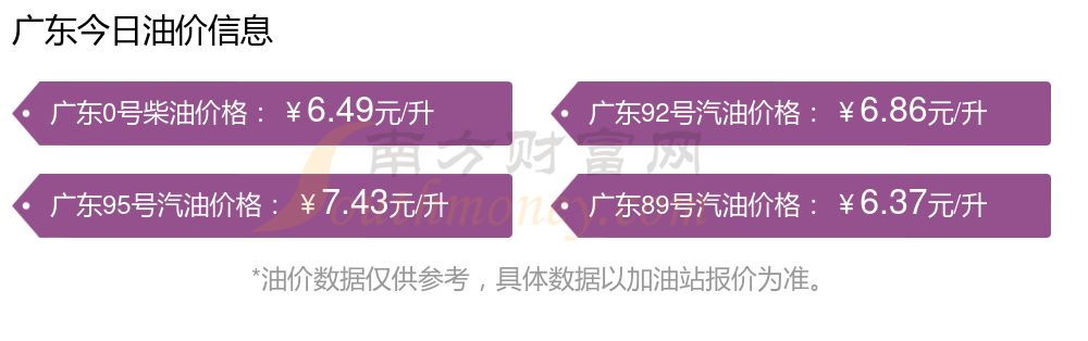 油价调整最新消息:广东陆丰汽油、柴油12月16日的价格是多少钱一升?详情为:92号汽油为6.86元,减了0.05元;95号汽油为7.43元,减了0.05元;89号汽油为6.37元,减了0.04元;0号柴油为6.49元,减了0.04元,本次油价的调整时间为12月9日。广东陆丰下一轮油价调整时间12月22日24时,距离现在还有6.7天。