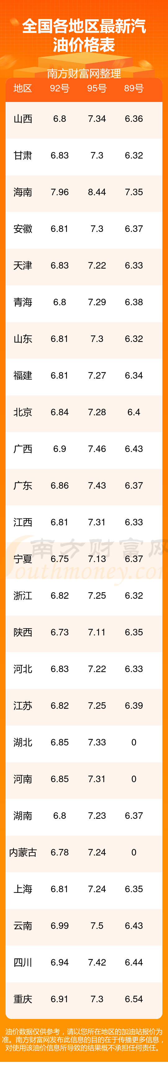 本站提供的油价数据仅供参考,具体数据以加油站报价为准。