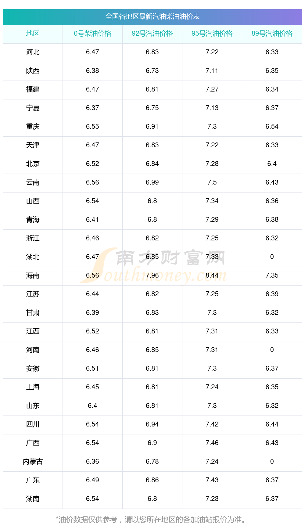 本站提供的油价数据仅供参考,具体数据以加油站报价为准。